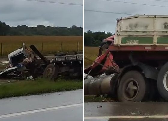 Dois motoristas e um passageira, ainda não identificados, foram socorridos com vida após um grave acidente entre duas carretas, manhã…
