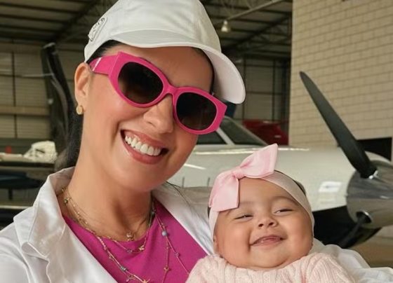 Caçula de Zezé esbanja sorrisos ao pegar jatinho com a mãe: ‘Conhecer Cuiabá!’
