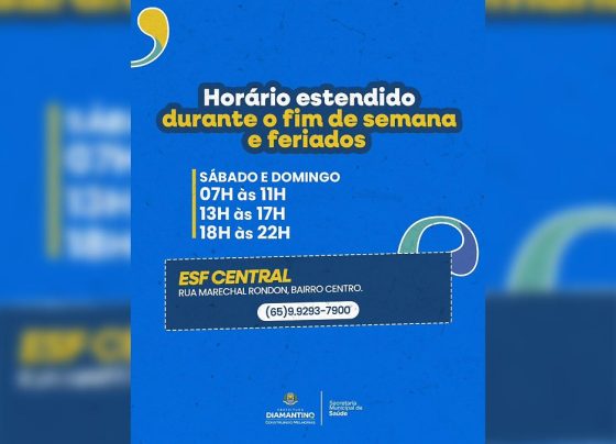 Unidades de saúde ampliam horário e passam a atender aos finais de semana em Diamantino/MT