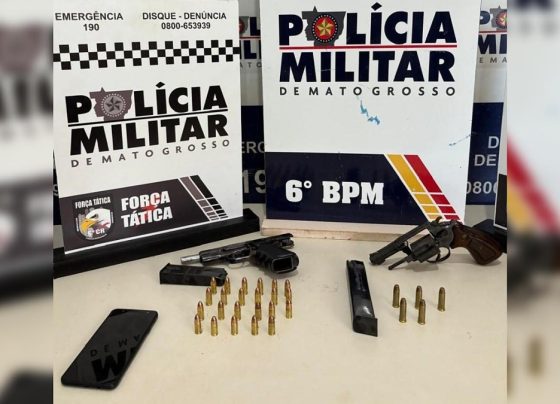 Divulgação/POWER MIX Paulo Eduardo/Power Mix Cáceres/MT Policiais militares do 6º Batalhão prenderam um homem de 20 anos e apreenderam um…