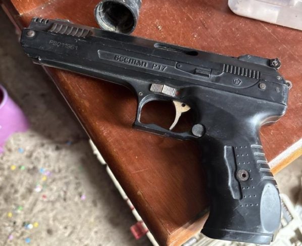 Na sequência os policiais civis e militares foram até o endereço para averiguação e encontraram diversos objetos quebrados no interior do imóvel. No local foi localizada a faca usada para ameaçar a vítima e um simulacro de arma de fogo.