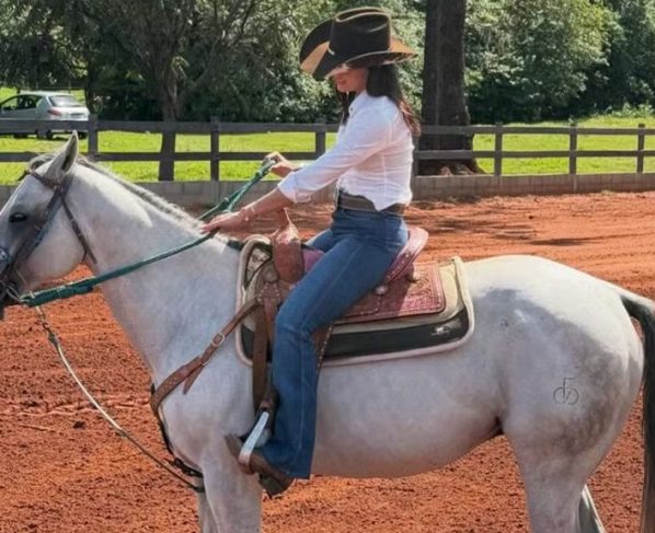 Na legenda, a artista divertiu os seguidores com a frase: “Mamãe, deixe sua filha ser uma boiadeira”. Para o momento, ela apostou em um visual clássico do estilo: calça jeans, bota, chapéu de cowboy e blusa social branca, combinando elegância e autenticidade.