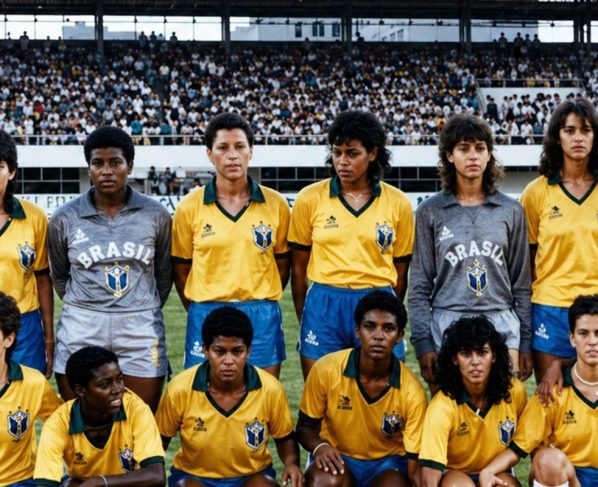 Primeira seleção feminina brasileira em aquecimento antes de partida no Torneio Experimental da Fifa (1988), na China – Acervo Museu do Futebol/Divulgação