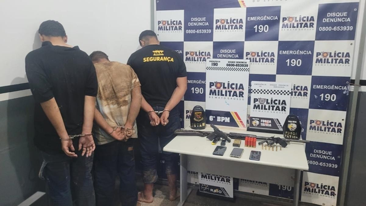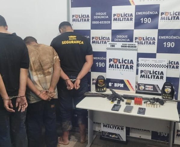 Em continuidade à operação, dois suspeitos foram abordados na rodovia MT-343, após informações repassadas por populares. Com apoio das equipes, foi realizada varredura em uma praça do bairro, onde os policiais localizaram uma pistola 9 milímetros com numeração suprimida e carregadores municiados. Durante a entrevista policial, um dos detidos confessou que havia vindo à cidade para realizar ataques contra integrantes de uma facção rival e indicou uma casa abandonada utilizada como ponto de apoio. No local, novas munições foram apreendidas.