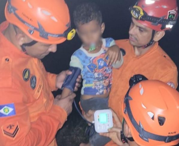 A criança foi encontrada em meio à vegetação, apresentando leve desorientação, desidratação, pequenos arranhões pelo corpo e diversas picadas de insetos.