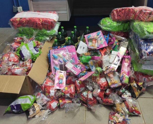 A equipe encontrou ainda um tablete e porções de maconha. Em outro cômodo, foi encontrada a caixa com doces, refrigerantes e diversos tipos de brinquedos, como bonecas e carrinhos. Segundo a polícia, a mulher disse que recebeu os produtos de membros da facção e que os brinquedos seriam distribuídos para as crianças do bairro, em uma comemoração do Dia das Crianças organizada pelo grupo criminoso.