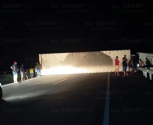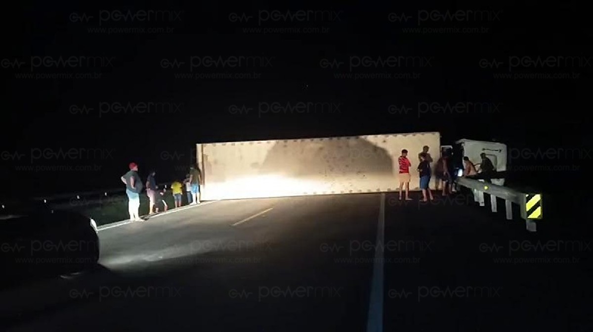 Um caminhão tombou na noite desta sexta-feira (24) na BR-163, nas proximidades da ponte sobre o Rio Arinos, sentido Cuiabá, deixando os dois sentidos da rodovia completamente interditados. O acidente ocorreu em um trecho crítico, onde termina a duplicação da pista, e provocou a paralisação total do fluxo de veículos.