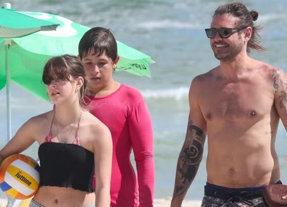 Com os filhos, Dado Dolabella curte dia de praia no Rio de Janeiro: ‘Eduardo e Ana Flor’