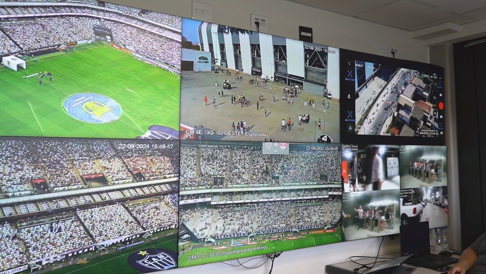 Para isso, o sistema de segurança do estádio, com câmeras e outros itens, foi acionado. A Arena MRV conta com mais de 350 câmeras espalhadas pelo estádio, além de drones que monitoram os arredores do bairro California, na região noroeste de Belo Horizonte.