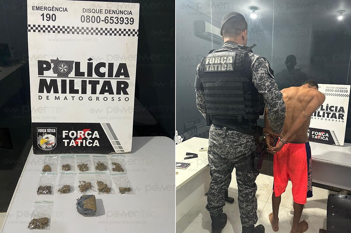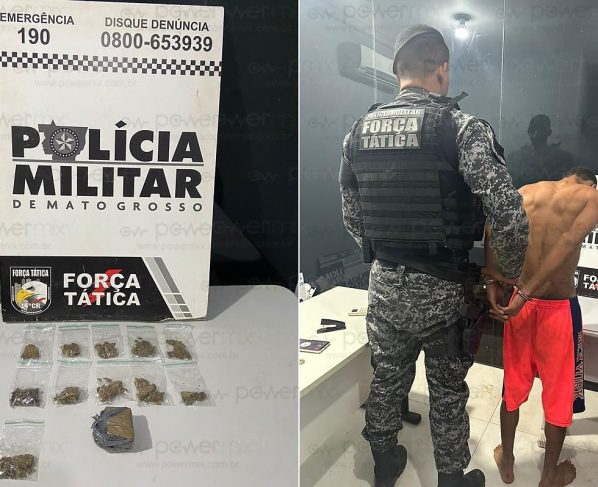 A Força Tática prendeu um jovem de 22 anos, por tráfico de drogas na noite desta sexta-feira (26), por volta das 21h30, durante abordagem na Rua das Pupunhas, bairro Prohab II, em Nova Mutum/MT.