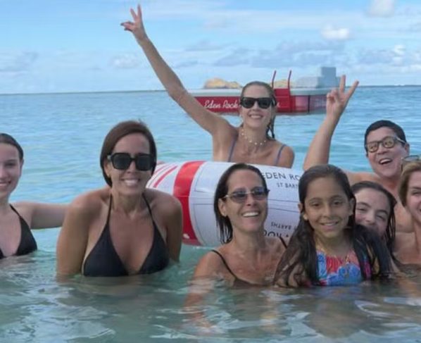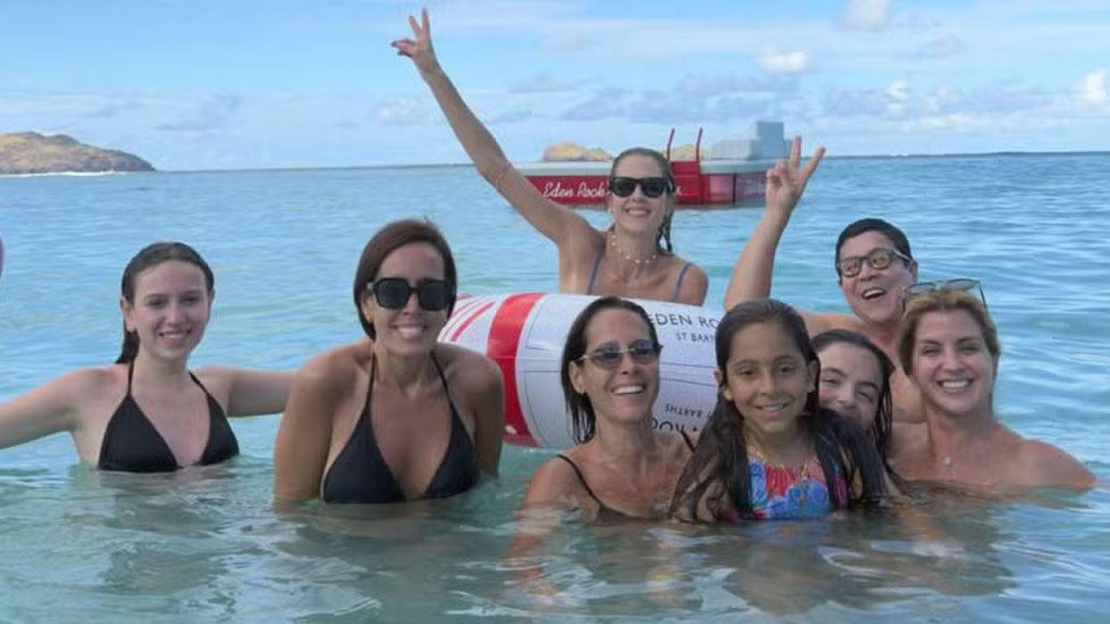 Gianne Albertoni, de 44 anos, curte dias de descanso em St. Barths, no Caribe, ao lado das atrizes Débora Nascimento, de 40, e Monique Alfradique, de 39.