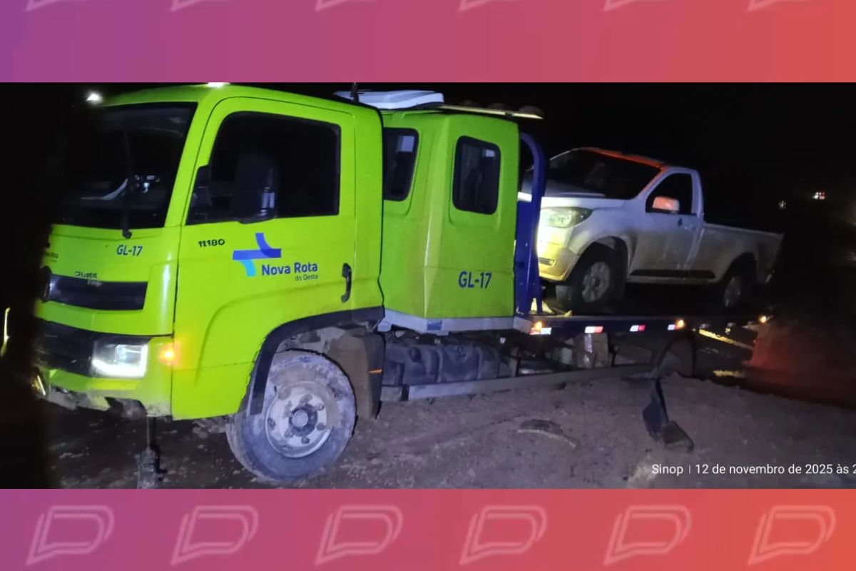 Durante a discussão, o condutor da S10 teria empurrado o trabalhador que caiu no chão e furtado o caminhão guincho, com a caminhonete já sobre a plataforma, fugindo em direção à cidade de Sinop (MT).