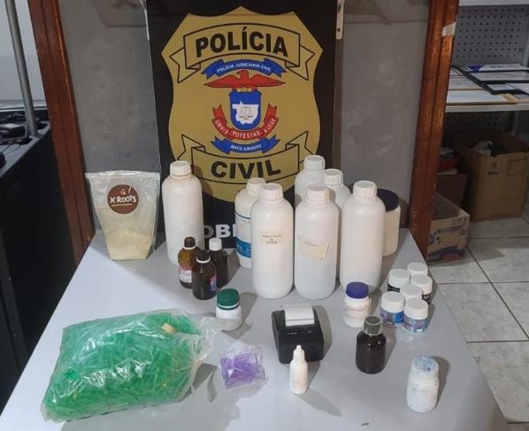 Durante o cumprimento do mandado de busca na residência e na clínica do suspeito, os agentes descobriram a existência de um laboratório químico clandestino, que era utilizado para a manipulação de substâncias. Também foi apreendida uma grande quantidade de medicamentos sem comprovação de origem ou registro sanitário.