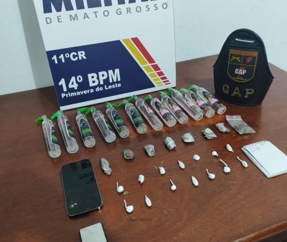 • Homem é preso pela PM com porções de drogas e frascos de lança-perfume em Primavera do Leste