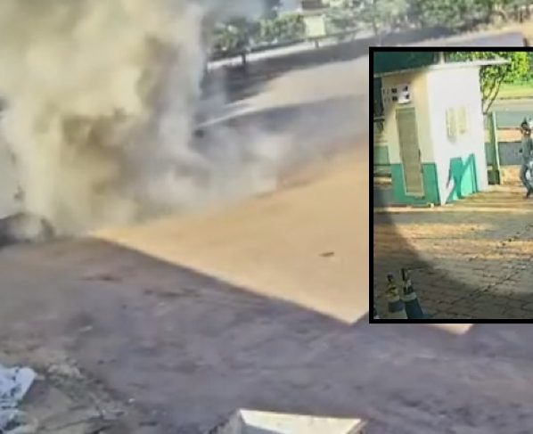 Segundos depois, funcionários correm até os veículos e tentam apagar as chamas usando um extintor. Alguns homens conseguiram retirar alguns veículos das proximidades e impediram que as chamas se alastrassem.