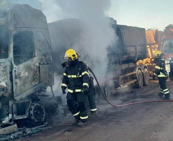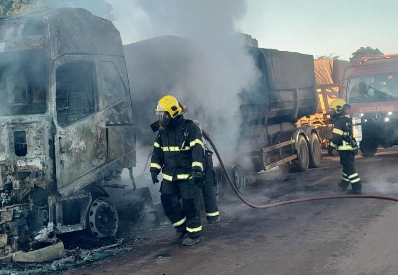 O Corpo de Bombeiros Militar de Mato Grosso (CBMMT) combateu, na manhã deste domingo (20), um incêndio em uma carreta na BR-163, em Sinop (500 km de Cuiabá). Com a rápida atuação das equipes, ninguém ficou ferido. O veículo pegou fogo no quilômetro 890 da rodovia federal.