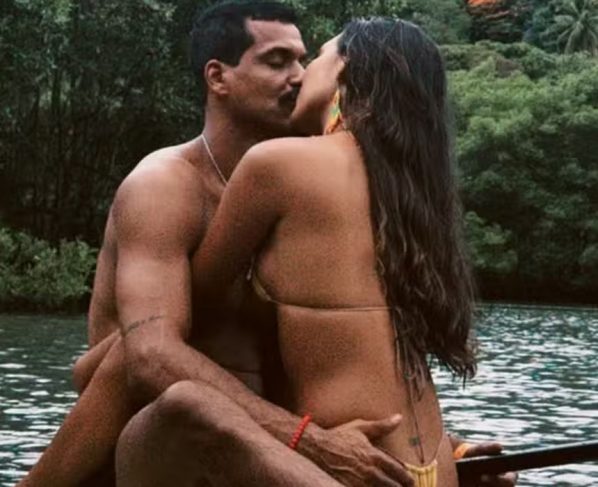 Nesta sexta-feira (2), os dois fizeram mistério sobre o destino, mas mostraram que estavam cercados por muito verde durante um passeio de barco por um rio da região. Em uma das fotos, Mell e Marcello aparecem trocando um beijo enquanto posam sobre uma prancha.