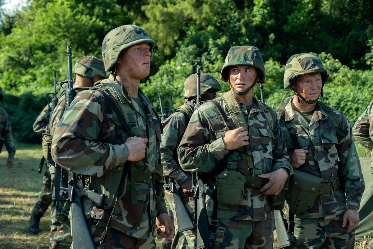 Brandon Tyler Moore como Cody Bowman, Kieron Moore como Slovacek e Angus O’Brien como Hicks em Boots, da Netflix