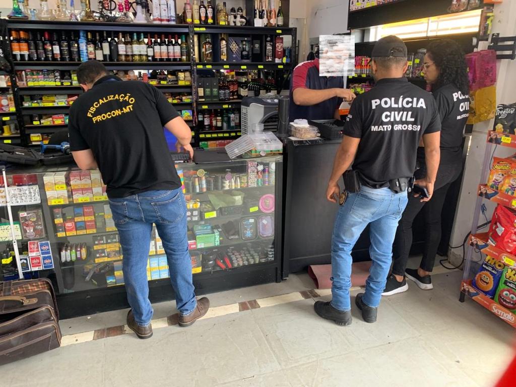 As fiscalizações nos comércios identificados foram realizadas pelos policiais civis da Decon, com o apoio de equipes da Delegacia Especializada de Defesa dos Direitos da Criança e do Adolescente (Deddica), da Delegacia Especializada de Roubos e Furtos de Cuiabá (Derf), da 3ª Delegacia de Polícia de Cuiabá e da Gerência de Operações Especiais (GOE).