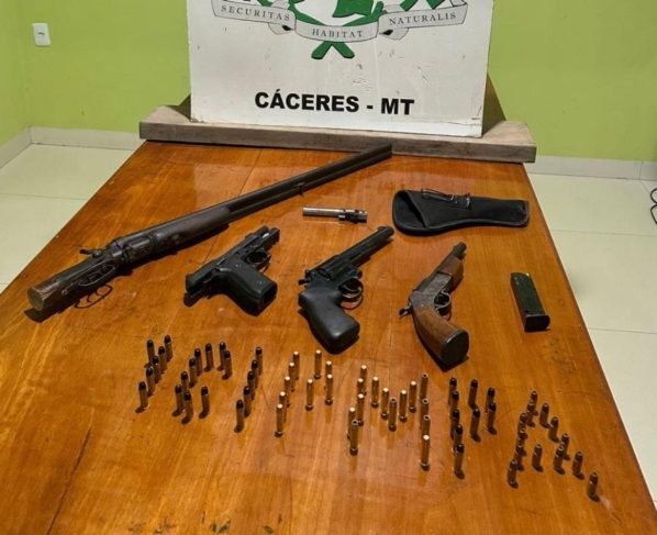 Policiais militares da 1ª Companhia Independente de Proteção Ambiental apreenderam, nesta sexta-feira (3.10), quatro armas de fogo, 72 munições e prenderam um homem em flagrante por crime ambiental, em Cáceres (220 km de Cuiabá).