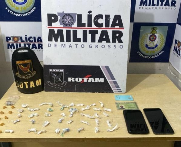 Policiais militares do Batalhão de Rondas Ostensivas Tático Móvel (Rotam) apreenderam, neste sábado (25.4), 57 porções de entorpecentes diversos e prenderam um homem, de 27 anos, suspeito por tráfico ilícito de drogas, em Cuiabá. O abordado já possui passagem pelo mesmo crime.