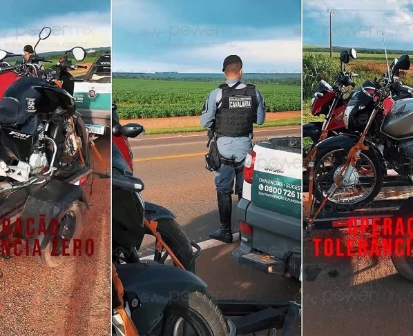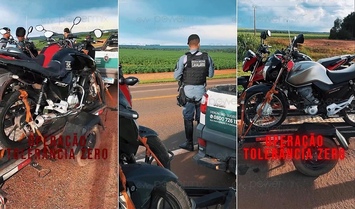 A Cavalaria da PM durante Operação Tolerância Zero, apreendeu quatro motocicletas na tarde desta quinta-feira (25), por volta das 16h30, na MT-235, em Nova Mutum/MT.