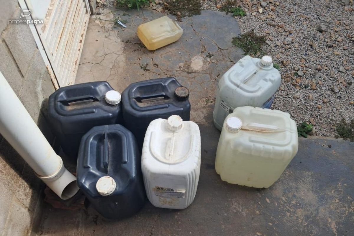 Os militares também apreenderam recipientes contendo substâncias compatíveis com combustíveis, em uma residência. O suspeito e todo o material apreendido foram encaminhados à delegacia para as devidas providências.