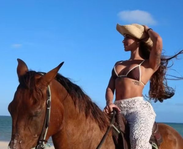 A influenciadora Tainá Militão, de 31 anos, aproveitou a quinta-feira (11), para um momento de descontração em São Miguel dos Milagres, em Alagoas. De biquíni, ela apareceu montando a cavalo à beira-mar e compartilhou os cliques com os seguidores, escrevendo.