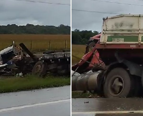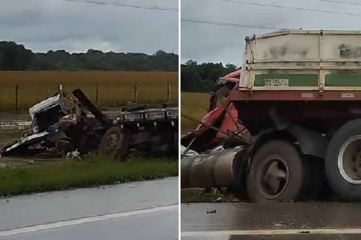 Em outro vídeo, enviado por um motorista que passou pelo local do acidente, é possível ver que as cabines das duas carretas ficaram completamente destruídas; veja: