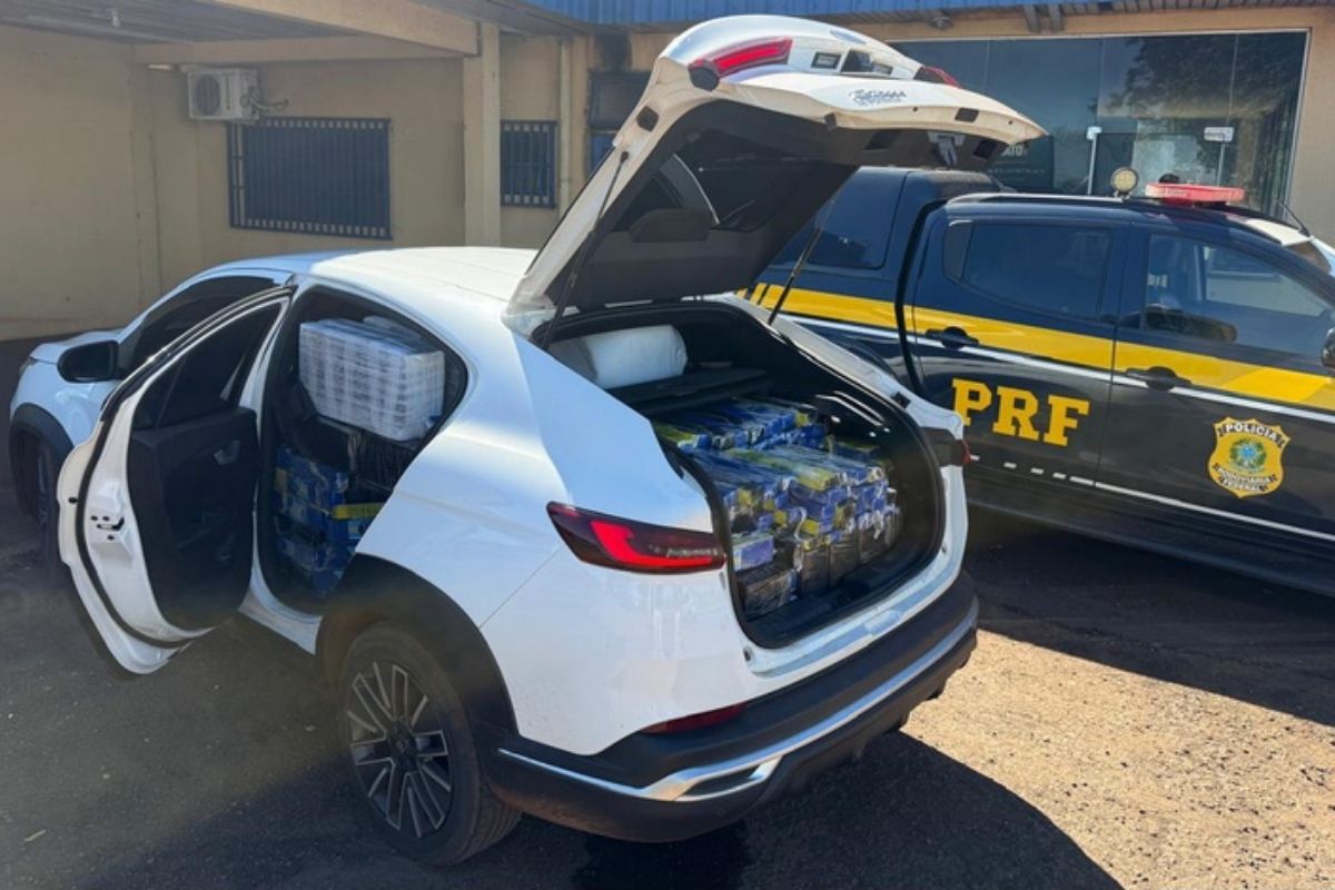 Cerca de 966 quilos de maconha foram apreendidos pela Polícia Rodoviária Federal (PRF) em um veículo que trafegava na BR-267 nesta terça-feira (14), em Nova Alvorada do Sul.