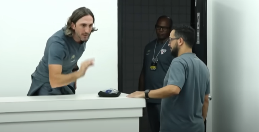 Na parte do vídeo em que é possível ouvir o áudio, o treinador cobra Gabriel Sá por boas perguntas. Ao fim, ainda diz: “Se quer ser um bom jornalista, acho que pode ser, não faça esse tipo de pergunta”.